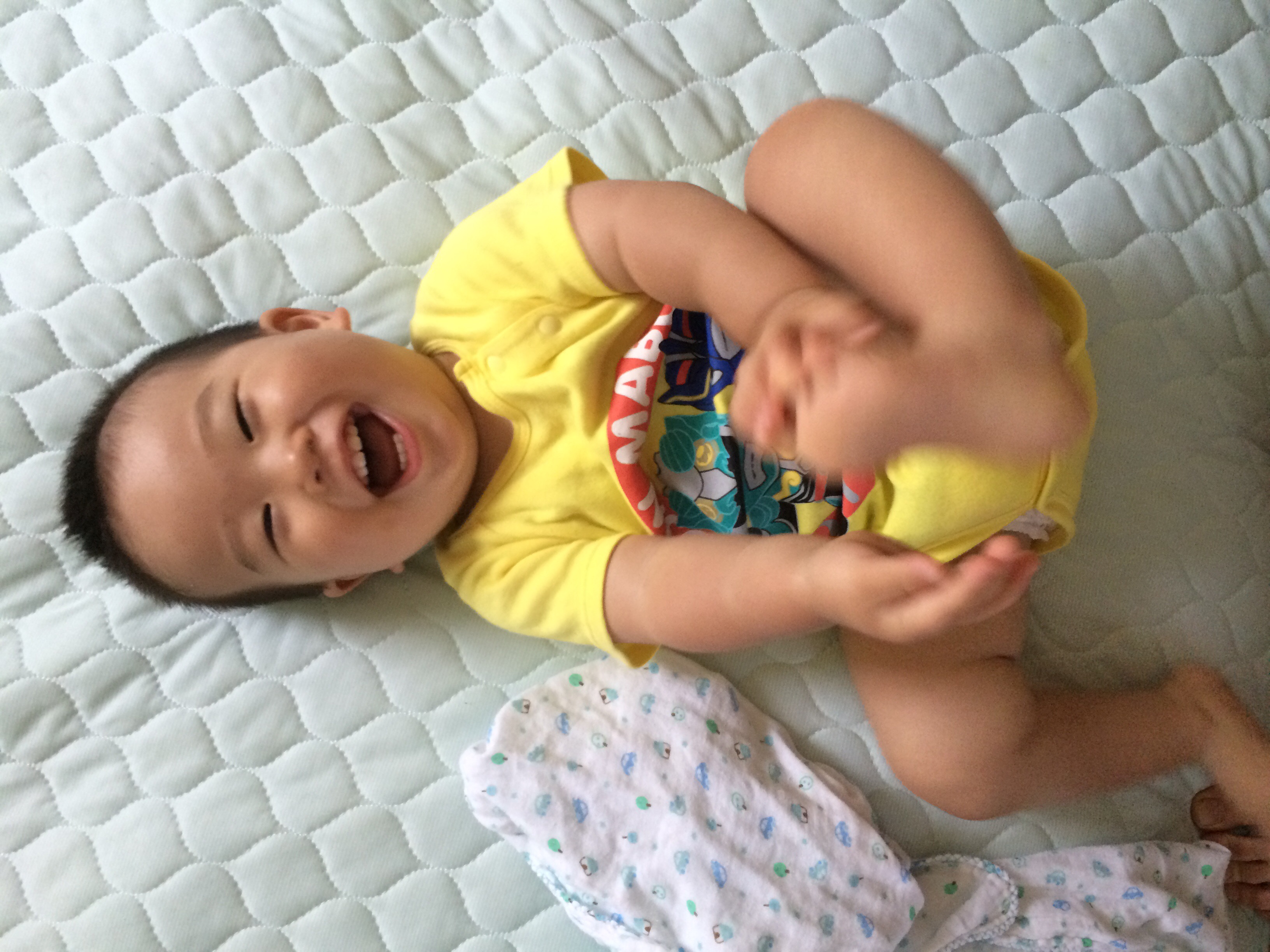 わたしもハイハイの態勢をとりとしのぶとハイハイ鬼ごっこする。 モーレツにわたしの膝が痛い! 体重がもろに膝にくる笑 膝サポーター必要だよっ としのぶをハイハイで追っかけるとマジで早くて必死!笑 そして膝激痛笑笑 歩くようになったらドタバタやってしまいそうだな……… |