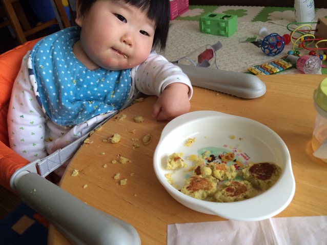 うーうー(-_^)と機嫌が悪い。 朝ごはん食べた後お昼寝の時間で眠そうにしているのに布団に置いてもギャーギャー泣いて、しまいにゃずりずりと脱出しキッチンに行ったりと母さんを困らせる。 最近あんまりしてなかったおんぶを久しぶりにしてやっとお昼寝。 その後お昼ご飯。 今日もサツマイモのおやきを作ったが。 片栗粉を入れ忘れちょっとおやきがもろい。 まぁいいやとおもって普通に食べさせようとするも、としも口に運ぶ前にポロポロと。。。 ひろってわたしが口に入れてやろうとするも、ギーーー! 拒否! ナニー? 今までそんなことしなかったじゃない。 自分で掴んだものしか口に入れようとしなかった。。。 もうテーブルも酷い有様で。 まさか大惨事になることを予想もしてなかったので下に新聞紙とか引いてなかったし、袖口カバーもお食事エプロンもしてなかった。(最近お食事エプロンさぼったりしてて(^◇^;)) 服もサツマイモのだらけ床もサツマイモだらけ、イスの中もサツマイモだらけ…… わたしもイライラ通り越してどーにでもなれってなっちゃって、じーっと見てただけ…… たまにため息も出て……( ̄ー ̄) 見かねたぷなおが手伝ってくれて、 掃除もしてくれた〜〜 感謝(-。-; 後追いなのかはわからないが今日は1人で全然遊んでくれなかった。。。 かまってちゃんな1日はとてーも疲れる〜〜っ ついてない日はとことんついてないもので。。。 夜ご飯も汁物がとしの手に届くところにあったのを気づかずに、ひっくり返され…… もーーー!!! ご飯あげないよっっ!! って怒っちゃったよ……( ̄ー ̄) すべては自分のミスなんだけどね。 最後はまた見てないうちに、テーブルのティッシュを引っ張り落としムシャムシャ…… とほほほほほ。 そいえば、ぶつかり防止に使ってなかったオムツシートが何枚もあったのでイスの下の鉄部分にぐるぐる巻いてる。 特に今のところぶつかってはいない。 ハンマーを手に入れたぞ〜〜 |